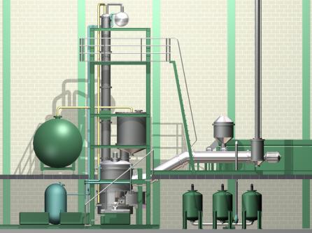 The current system size is 4000 to/a. By modular arrangement, units of up to 40.000 to/a can be set up. The recycling process begins with the acceptance of used oil at the plant. The used oil is pumped from a tanker into a supply tank. From there it is fed into the reactor of the depolymerization plant via an intermediate tank once it has passed through a fine filter.